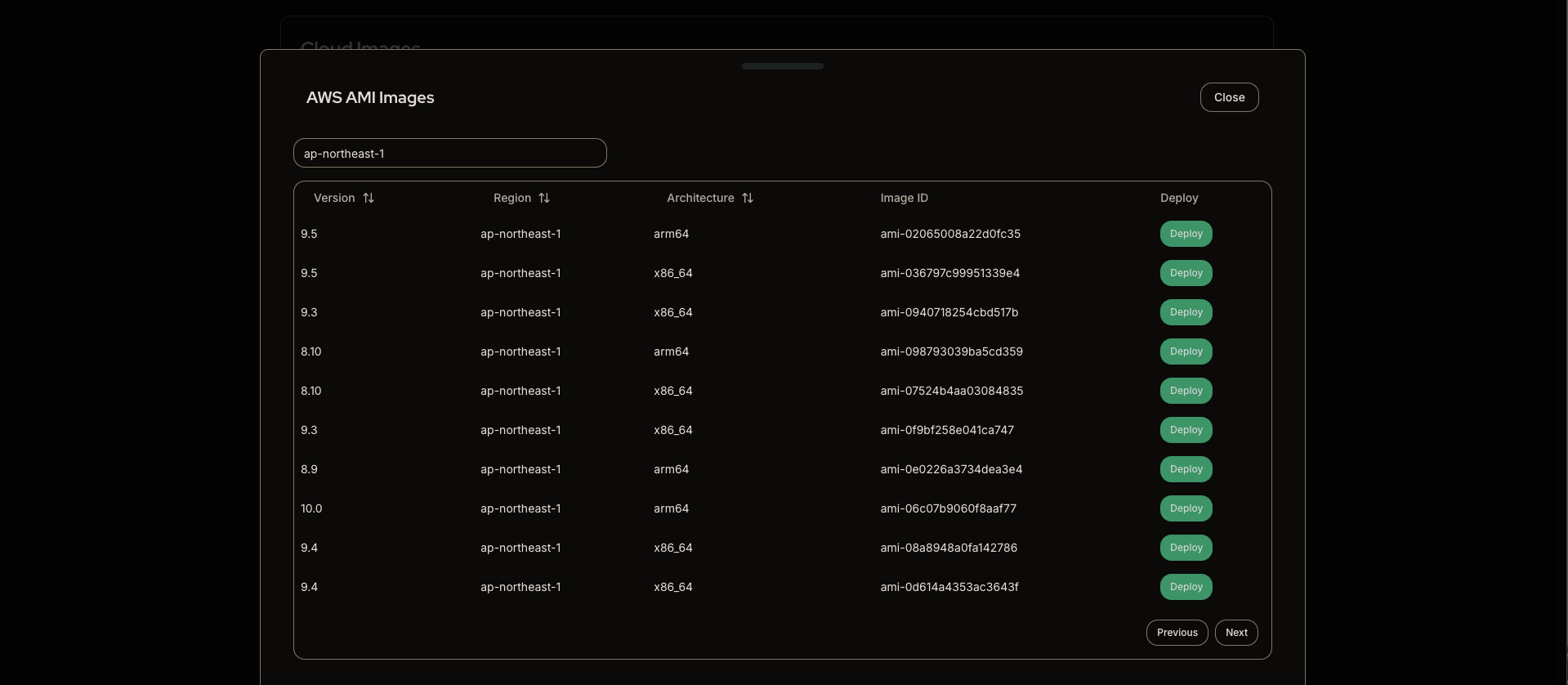 I’ve found that here are two types of AMIs from website (AWS AMI)here at Region: ap-northeast-1 :
