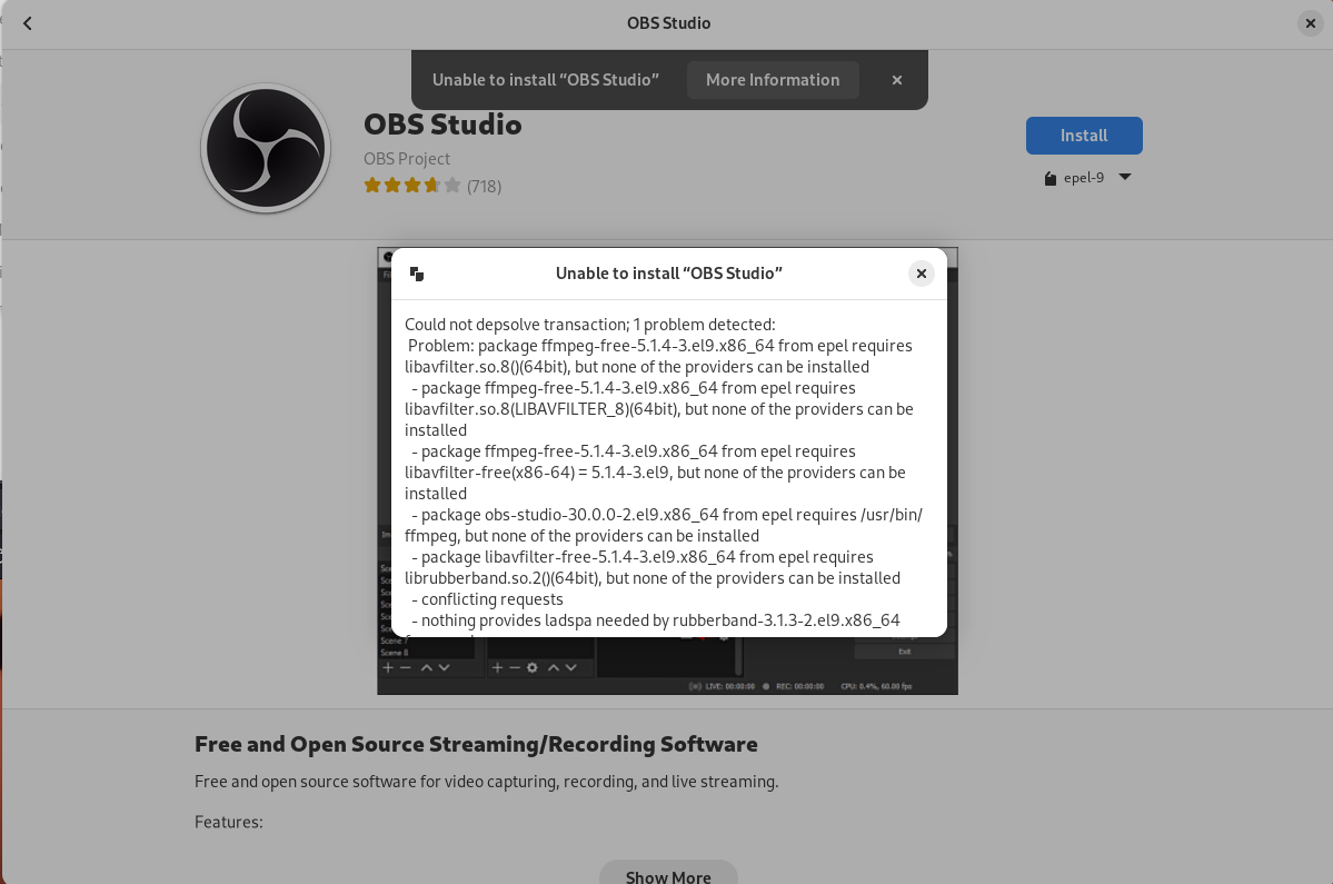 Another question, when i try installing software from the app store, some software installation showing error that could not depsolve transaction, how about solving this one? Thanks.